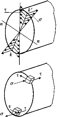В этих же точках имеют место и наибольшие касательные напряжения кручения