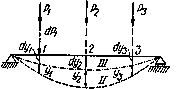 Прогибы сечений 1, 2, 3,..., в которых приложены силы