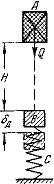 Предположим, что очень жесткое тело А весом Q, деформацией которого можно пренебречь, падая с некоторой высоты H, ударяет по другому телу B, опирающемуся на упругую систему С (рис.2). В частном случае это может быть падение груза на конец призматического стержня, другой конец которого закреплен (продольный удар), падение груза на балку, лежащую на опорах (изгибающий удар), и т. п.