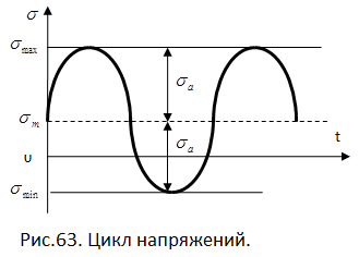 Цикл напряжений – совокупность всех значений переменных напряжений за время одного периода изменения нагрузки.