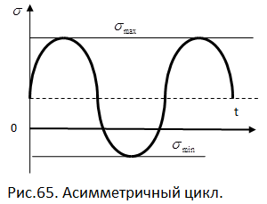 Асимметричный цикл - максимальное и минимальное напряжения не равны по абсолютной величине (