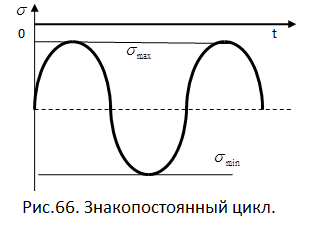 Знакопостоянный цикл - максимальное и минимальное напряжения не равны по абсолютной величине и имеют одинаковый знак (