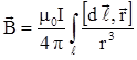 – индукция, создаваемая элементом длины проводника dℓ, интегрирование проводится по всей длине проводника.
