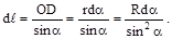 будет меняться угол α между r и dℓ, поэтому выберем α в качестве переменной интегрирования. Выразим через α все остальные величины, полагая, что отрезок АD ≈ r из-за малости dℓ.