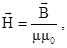 т.е. модуль Н в μμ0 раз меньше модуля В. Для вакуума магнитная проницаемость μ=1, поэтому