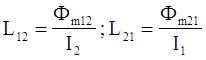 где L12 и L21 - скалярные величины, равные отношению потокосцепления одного контура к силе тока в другом, обуславливающей это потокосцепление. В отсутствие ферромагнетиков для любых двух связанных контуров коэффициенты взаимной индукции равны друг другу: