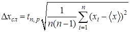 Окончательная формула для расчета случайной погрешности Dхсл, определяющая полуширину доверительного интервала
