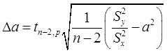 где tp,n-2 - коэффициент Стьюдента для доверительной вероятности P и (n-2) измерений. При P = 0,95 и n ~ 12-15 коэффициент tp,n-2 = 2,25.