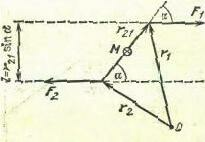 ) параллельно плоскости. Рукоятку вращаем от первого вектора ко второму по кратчайшему расстоянию, при этом острие укажет направление момента силы. Поскольку его направление определяется условно, М является псевдовектором. Зависит от выбора оси вращения.