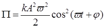 Потенциальная энергия тоже меняется по закону и тоже с удвоенной частотой. Полная энергия: