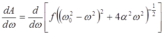 где tgψ – сдвиг фаз установившихся колебаний относительно вынуждающей силы. Заметим, что амплитуда колебаний в данном случае зависит от частот ω0 и ω. Чтобы исследовать данную функцию, найдем экстремумы А: