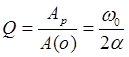 . Это резонансная амплитуда, Ар>>А(0) при малом α. В качестве характеристики резонансных систем вводят понятие добротности: