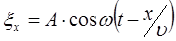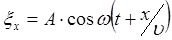 где x – смещение частичек из положения равновесия, А – амплитуда волны, w - циклическая частота