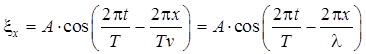 Так как для прохождения волной расстояния х требуется время t=х/u, где u – скорость распространения волны, то уравнение колебаний частиц, лежащих в плоскости х, имеет вид: