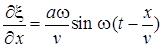 – уравнение, описывающее плоскую монохроматическую волну, распространяющуюся вдоль оси x (в положительном направлении) со скоростью v. Знак "минус" – если в отрицательном направлении оси х .