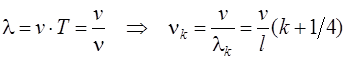 - на длине волны укладывается такое количество длин волн (открытая труба).
