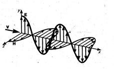 Векторы E и H напряженностей электрического и магнитного полей волны взаимно перпендикулярны и лежат в плоскости, перпендикулярной вектору скорости распространению волны v, причем векторы E, H и v образуют правовинтовую систему. Векторы E и H всегда колеблются в одинаковых фазах, их мгновенные значения в любой точке связаны соотношением: