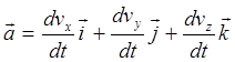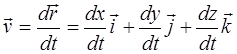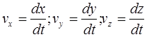 В прямоугольной декартовой системе координат компоненты вектора скорости запишутся следующим образом: