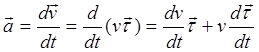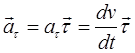 - составляющая ускорения, направленная вдоль скорости и характеризующая изменение модуля скорости. Эта составляющая называется касательным, или тангенциальным ускорением: