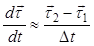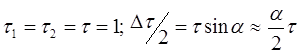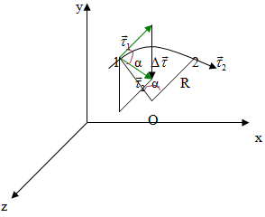 Пусть за малый промежуток времени материальная точка переместилась из 1 в 2. Изображены единичные касательные векторы