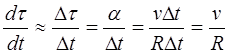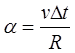 в точку 1. Малый участок любой кривой можно представить как малую дугу некоторой окружности. В соответствие с этим, участок траектории между 1 и 2 представляется дугой окружности с радиусом R и центром в точке О. Тогда α – угол, под которым видна дуга окружности. Угол между
