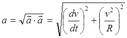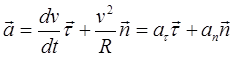 направлена к центру окружности, которая заменяет участок кривой. Значит, вторая составляющая вектора ускорения, направленная перпендикулярно касательной к кривой, т.е. к вектору тангенциального ускорения: