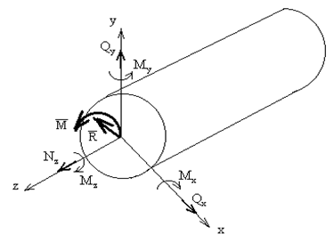 Из курса теоретической механики известно, что любую произвольную систему сил можно привести к центру тяжести сечения. В результате внутренние силы упругости, действующие в рассматриваемом сечении, приводятся к главному вектору