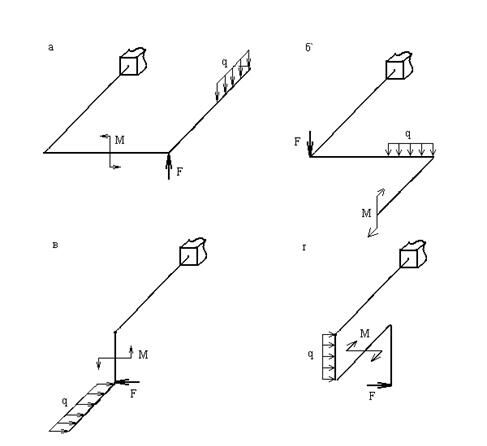 2) система располагается в вертикальной плоскости, нагрузки приложены горизонтально (рис.15,в,г)