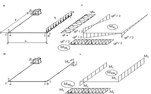 (рис.16,к) позволяет сделать очевидный вывод о том, что если момент приводит к изгибу какого-либо стержня, то кручение на этом участке отсутствует и наоборот.