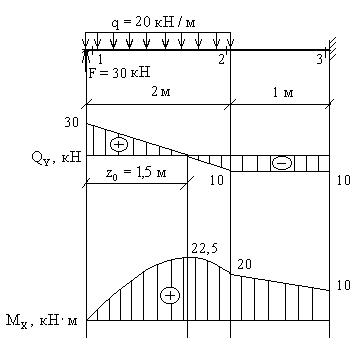 будет иметь экстремальное значение. Действительно, пересечение эпюры с осью z означает, что в этом сечении