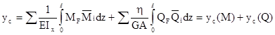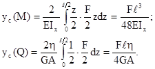 Подставляя значения изгибающих моментов и поперечных сил в сечении с координатой z (рис.27) для составляющих полного перемещения получим: