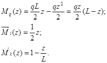 (рис.26,г). Примем начало координат на левой опоре; тогда ординаты указанных эпюр в сечении с координатой z соответственно равны:
