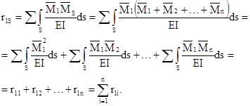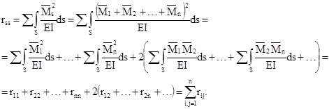 Таким образом, проверка вычисленных значений коэффициентов, входящих в первое каноническое уравнение метода перемещений, состоит в проверке условия: