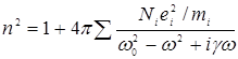 Если учесть, что в веществе может быть несколько сортов заряженных частиц с массами mi и собственными частотами ω0i и зарядами еi, то уравнение дисперсии запишется следующим образом
