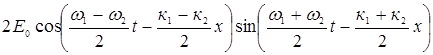 Е=Е1+Е2=Е0sin(ω1t1х)+Е0sin(ω2t2х)=