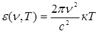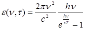 Если учесть, что для абсолютно черного тела a(ν,Т)=1, то отношение (4) будет являться спектральной излучательной способностью абсолютно черного тела, которую обозначим через ε(ν,τ), таким образом, закон Кирхгофа запишется в виде