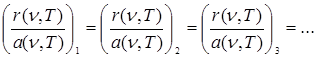Отношение испускательной способности и поглощательной способности не зависит от природы тел и является для всех тел одной и той же универсальной функцией частоты и температуры, т.е.