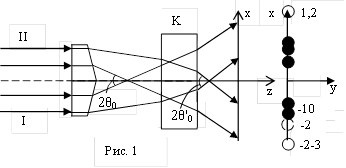 Каждый из пучков дифрагирует на этой решетке, в результате чего возникают новые пучки, и направление их распространения совпадают с направлениями на главные максимумы.