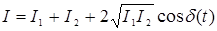 Если разность фаз δ(t)= Ф12 остается постоянной во времени, то волны будут когерентными. В случае некогерентных волн cosδ(t) принимает значения от -1 до 1 и среднее значение его будет равно 0, тогда