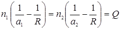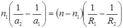 Это соотношение позволяет найти а2, если известно а1. При R>0 поверхность выпуклая, при R<0 – вогнутая. При а2>0 изображение действительное, при а2< – мнимое.