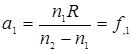 Эта общая формула линзы годна для любых тонких линз, при любом расположении источника и фокусов. Нужно только принимать во внимание знаки а1 и а2, R1 и R2, считая их положительными, если они отложены вправо от линзы, и отрицательными, если они отложены влево. Если знаки а1 и а2 одинаковы, то одна из сопряженных точек – мнимая.