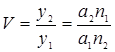 . Для действительных изображений V<0, т.е. изображение обратное, для мнимых V>0, изображение прямое.