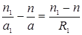 Преломление на первой поверхности создало бы без второй поверхности в сплошном стекле с показателем преломления n, изображение в т. С на расстоянии ОС=а от вершины, тогда для этой поверхности имеем