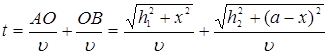 Видим, что время t зависит от х, т.е. от положения т.О. Согласно принципу Ферма имеем