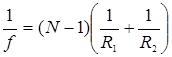 Фокальное расстояние линзы определяется формулой