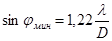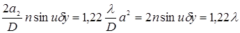Будем придерживаться критерия Релея, который требует для разрешения изображений, чтобы максимум одной кривой дифракции приходился на минимум второй кривой. Условие минимума в данном случае имеет значение