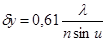 , где n и n¢ коэффициенты преломления вещества перед объективом и после него, u и u¢ углы раскрытия (рис 7). Из условия разрешенного расстояния имеем