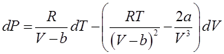 Для одного моля газа Ван-дер-Ваальса уравнение состояния имеет вид