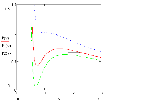 Для газа Ван-дер-Ваальса можно провести линию, которая будет соответствовать равновесию фаз. Эта линия называется бинодаль. Положение бинодали определяется равенством площадей, отсекаемых горизонтальной линией от зависимости p(V).