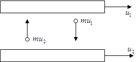 . В простейшей модели идеальных пластинок можно считать, что взаимодействие между молекулой и пластинкой в момент удара приводит к тому, что молекула, отскочив от пластинки, имеет в дополнение к тепловой скорости составляющую, равную по величине и направлению скорости пластинки. Об единицу поверхности верхней пластинки будет ударяться в секунду